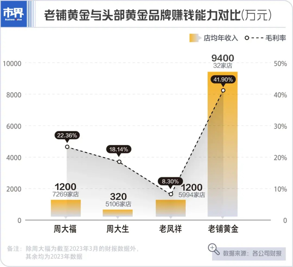 老铺黄金的单店卖货能力可谓惊人,是周大福的7倍多。