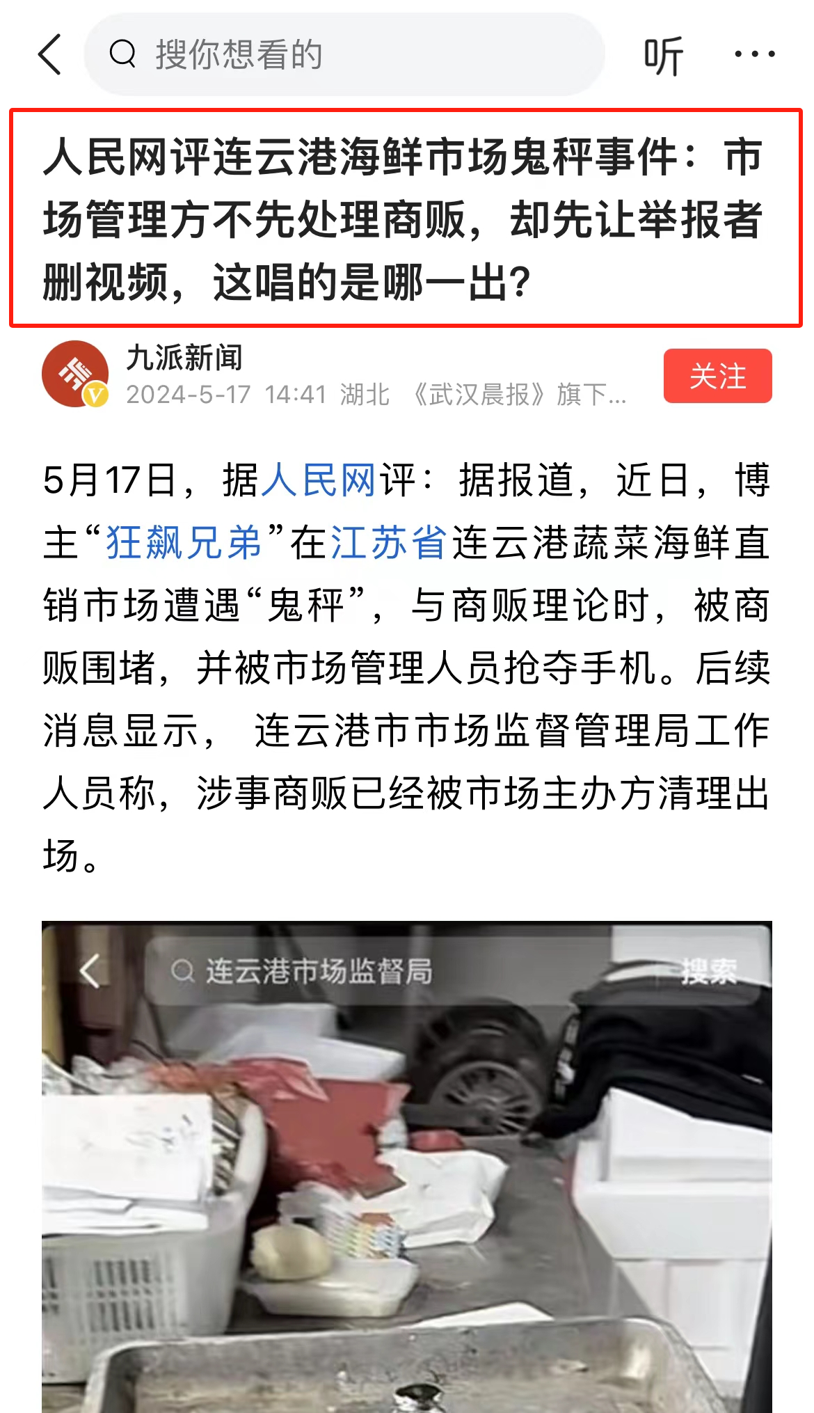 #头条创作挑战赛##人民网评连云港海鲜市场鬼秤事件##“狂飙兄弟”被抢手机已还回##连云港鬼秤商贩已被清出市场##公安介入调查连云港商贩抢夺手机##连云港鬼秤事件附近商户发声#
