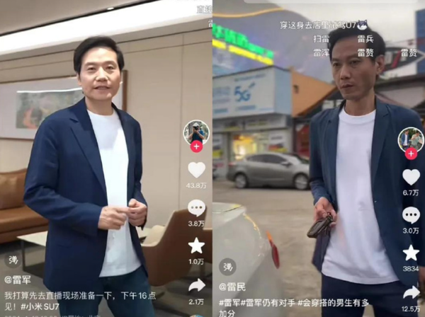 【CNMO科技消息】随着雷军的热度持续高涨,一位自称为“雷民”的抖音用户近期通过模仿雷军吸引了大量流量。这位用户不仅穿着与雷军相似的蓝色西服和白色T恤,连发型和举止都尽量模仿雷军,甚至在上车和走路的动作上都力求一致。更为有趣的是,他还经常使用“雷军特效音”作为视频背景音乐,其中《Are you ok》这首经典名曲更是频繁出现。