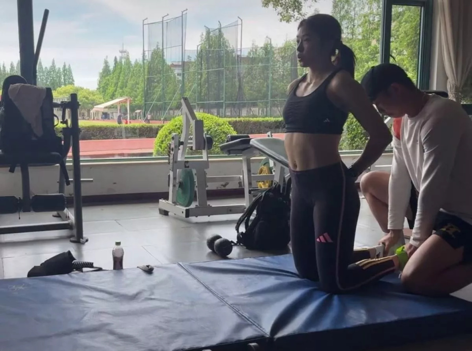 而从另一张配发的照片看,吴艳妮正在吃力地举起杠铃,足以可见她日常的体能训练是充满艰辛的。