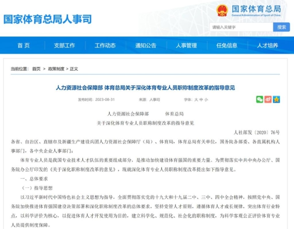 一位熟悉运动员安置政策、职称序列转换的体育高校权威人士告诉中国
