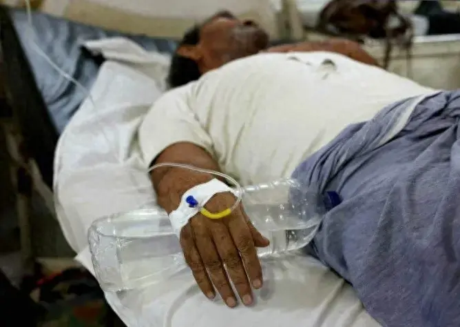 当地时间5月30日,印度北方邦瓦拉纳西的一名男子因高温入院。图源:法新社