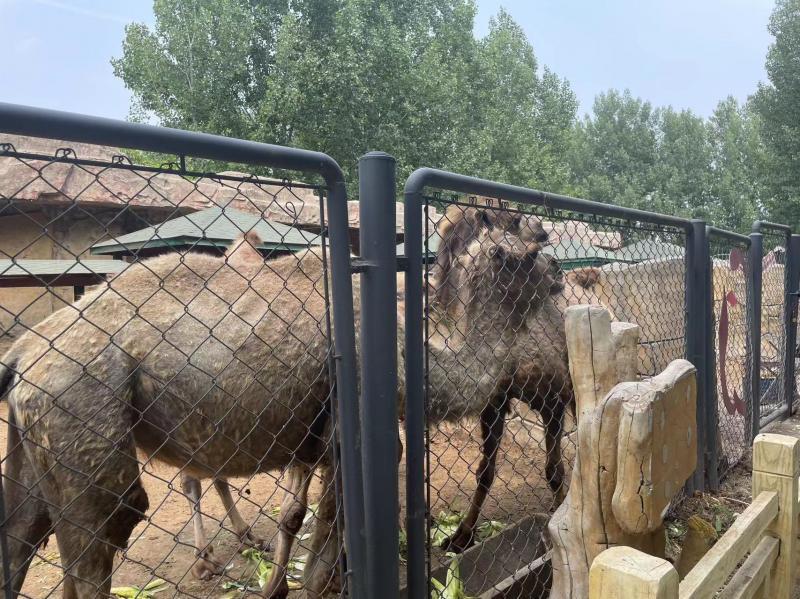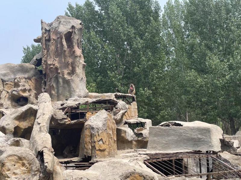 北青报记者在园区粗略游览后发现,园区饲养有鸸鹋、矮马、骆驼、鸵鸟、牦牛、驴、猴子、山羊、鹿等多种动物,当有人走进笼舍,鸵鸟、山羊等动物会主动上前等待投喂。记者注意到,山羊等部分动物的食槽内剩有部分饲料,而骆驼等动物的食槽内则主要是爱心人士送来的食物。现场的骆驼确有驼峰塌陷情况,看起来较为瘦弱,但其他动物目测体态比较正常。在猴山,北青报记者注意到,猴山上很多钢筋暴露在外,一些施工用料堆放在旁边,有猴子正在吃西红柿。