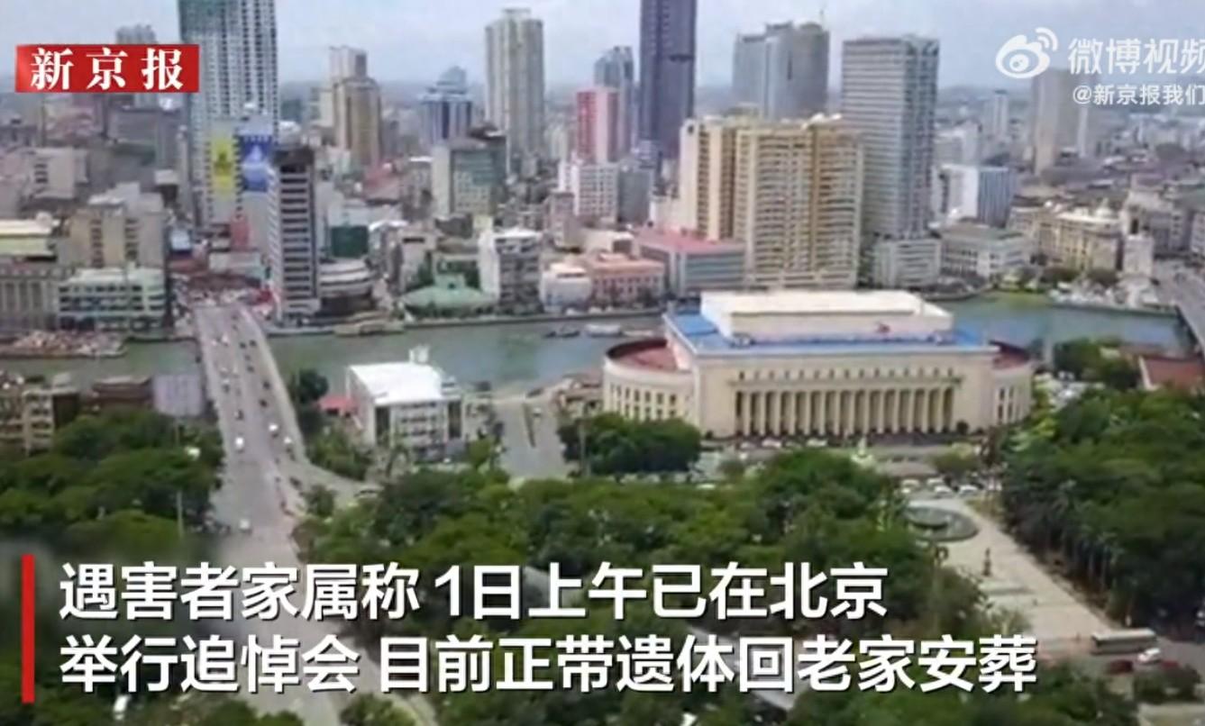 【#在菲律宾遇害中企管理人员家属发声#:出差时遭绑架 已举行追悼会 准备回老家安葬】#中企人员在菲被绑架付300万后仍遇害# 近日,两名中国企业工作人员赴菲律宾工作时遭绑架并撕票引发关注。7月1日, 记者从遇害者家属处获悉,两人系去菲律宾出差时遭遇绑架。遇害者家属称,1日上午已在北京举行追悼会,目前正带骨灰回老家安葬。遇害者家属称,公司已给予家属相应帮助,相关善后工作正在进行。据媒体报道,遭遇绑架时其中一位家属向绑匪支付300万元赎金, 但绑匪仍然撕票,目前当地警方已介入调查,暂未透露案情进展情况。