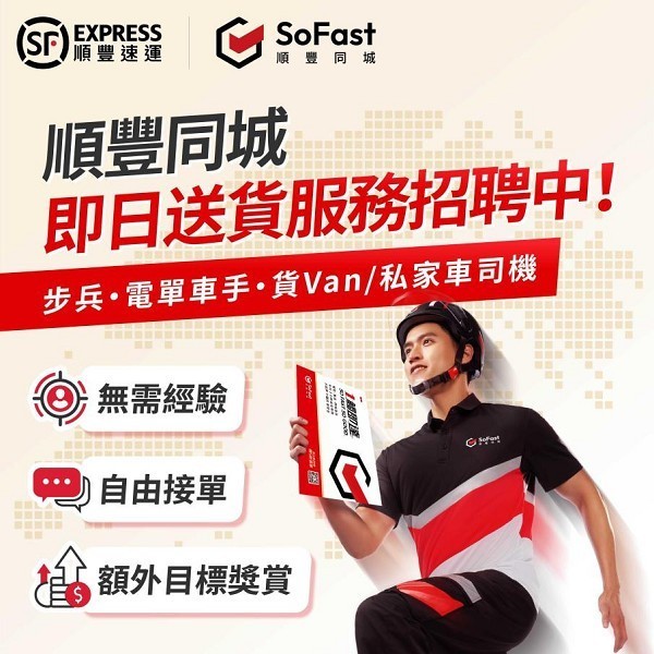 运力方面,此前,顺丰同城香港地区骑士专用App“SoFast Rider”已上线,且在多个平台发布招聘信息,积极招募大量步兵、单车、电单车、私家车和客货车骑手伙伴。只需一个手机号码,香港居民即可在App内注册成为骑手,选择工作地区、上传身份证明文件后,参加线下培训即可获得接单资格。