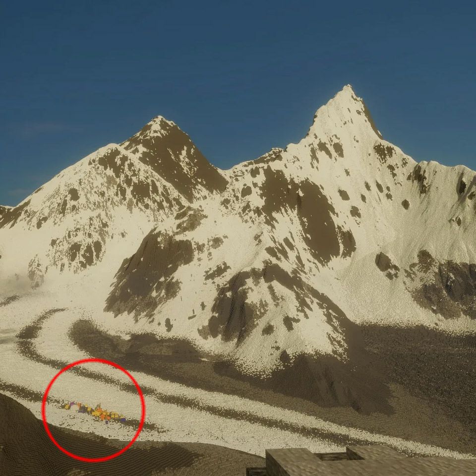 更令人惊叹的是,Amon6669还对珠穆朗玛峰的气候进行了精准模拟,使得游戏中的珠峰大本营仿佛再现于眼前。玩家在地图中标注附近所有重要地标后,看上去就像一张详细的登山路线图一样。这一成就无疑让人对Amon6669的专业素养与技术水平赞叹不已。