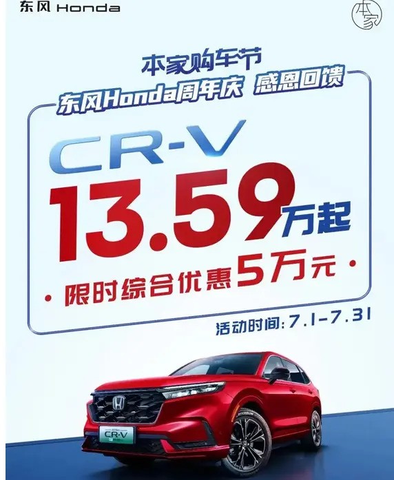 东风本田近期宣布,将启动一项限时购车优惠活动,该活动涉及其两款热门车型:本田CR-V和本田思域。此次活动从7月1日开始,并将在7月31日结束。该优惠旨在为消费者提供购车的实惠,最高可享受5万元或3.5万元的折扣。