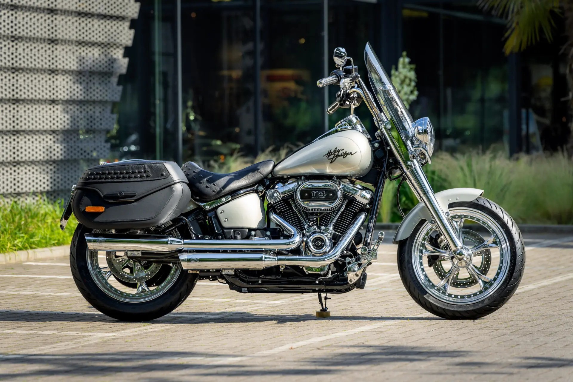 首先,Thunderbike为车辆更换了Lowrider系列定制轮毂,并配备了前130毫米后150毫米Metzeler轮胎和Floated Vegas浮动刹车盘。此外,Kess-Tech电子可调排气系统也被添加进来。前挡泥板来自哈雷Slim,而后面挡泥板则选用Street Bob。同时,还有一些牛角、脚踏和灯光等方面的改动。