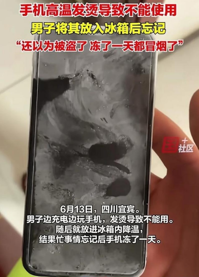 不幸的是,这位用户在随后忙碌中完全遗忘了这一举动,导致手机在冷冻层内被遗忘长达整整一天。当最终被发现并取出时,手机已被厚厚的冰霜覆盖,而更令人瞠目结舌的是,手机表面竟缓缓升起了袅袅轻烟,场景令人惊愕。