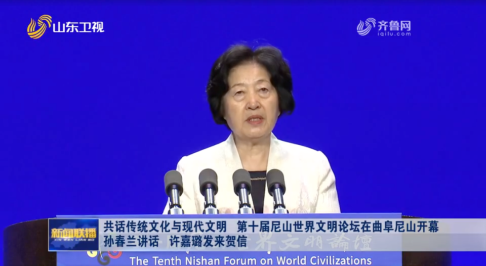 中共中央政治局原委员、国务院原副总理、国际儒学联合会会长孙春兰出席开幕式并讲话,全国人大常委会原副委员长许嘉璐发来贺信。