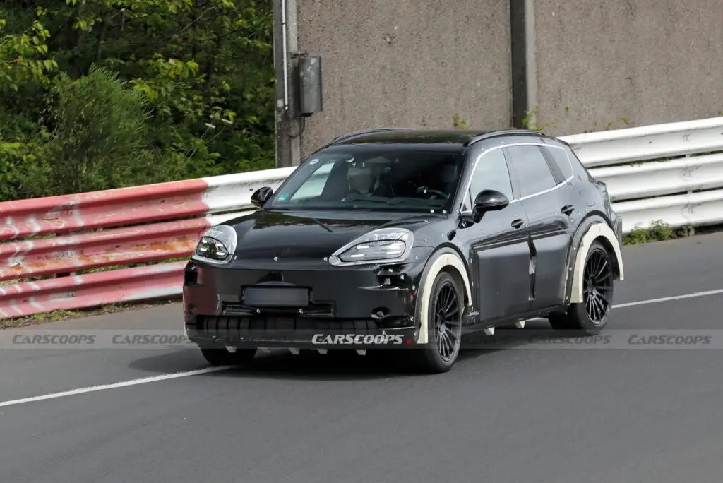 近日,外媒拍摄到了保时捷纯电动卡宴原型车在纽博格林北环赛道进行测试。这款新车的底部装有许多传感器,可能是在观察离地间隙的变化,并对悬挂系统进行测试。据悉,全新纯电动卡宴预计将于2025年底或2026年初亮相,定位高于现款Macan电动车,在北美市场将于2026年或2027年上市。