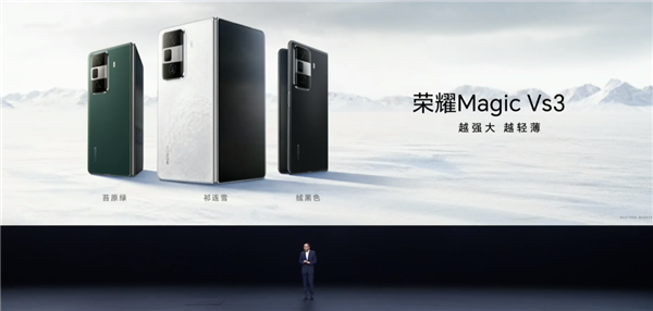 在今天举办的荣耀Magic旗舰新品发布会上,荣耀推出了一款备受瞩目的产品——荣耀Magic Vs3折叠屏旗舰。这款手机主打均衡的性价比,拥有轻薄机身、旗舰芯片、潜望式长焦镜头、自研射频增强芯片和护眼屏幕等配置。