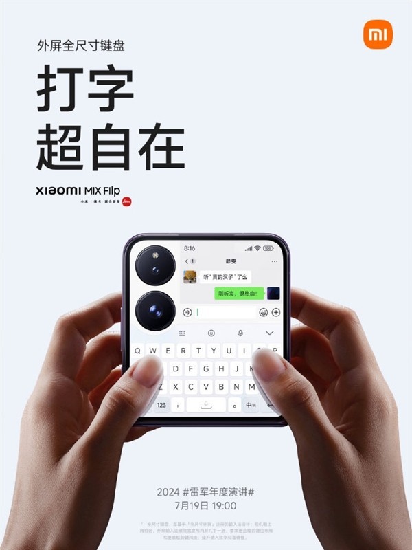小米MIX Flip将于明天正式发布,这是一款创新的小折叠手机。该机配备了4.01英寸的超大外屏,是目前量产小折叠中最大尺寸的之一。外屏可以实现全尺寸键盘输入,支持多种输入方式,并且摄像头不会遮挡键盘。
