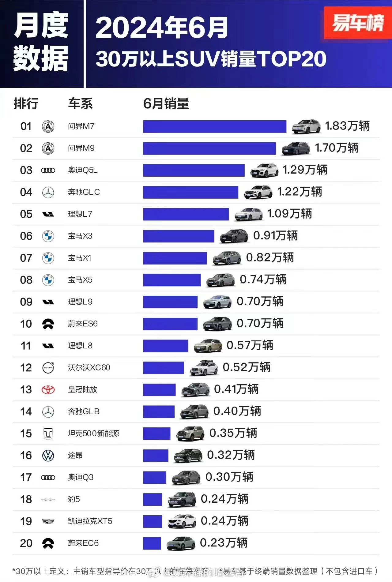 转载:https://mobile.zol.com.cn/885/8851407.html 2024-07-18 17:47:31·[??中关村在线 原创??]·作者:某吃瓜群众 HUAWEI Mate 60(12GB/256GB) 电商报价 京东商城¥5499本地商家¥5499 6月国内SUV 30万元以上销量榜中,华为通过其合作品牌赛力斯汽车旗下的问界系列车型展现出了强劲的实力,但说华为“实力霸榜”可能略有夸张,因为销量榜前列仍然有多款来自其他品牌的热门车型。不过,问界系列车型在销量上的表现确实相当亮眼。华为 Mate 60 12GB+256GB 雅川青[经销商]?京东商城[产品售价]?¥ 5499元 相关论坛 相关广告