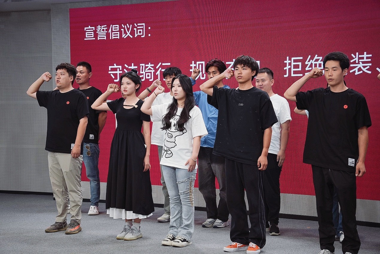 图:市民及电动自行车行业企业代表共同承诺安全用车