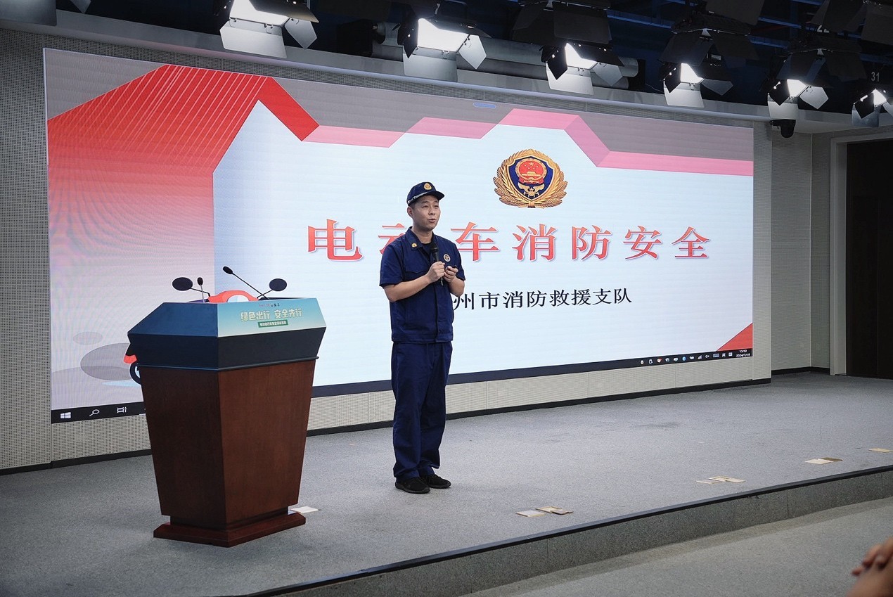 郑州市消防救援支队新闻宣传处处长杜玉若也在致辞中讲到,此次联合交通管理部门共同开展“绿色出行安全先行”电动自行车安全倡议活动,旨在进一步规范群众对电动自行车停放、充电的行为,提高群众对电动自行车火灾的防范意识和消防安全责任意识,为电动自行车停放充电加把“安全锁”,为群众营造平安和谐的居住环境。