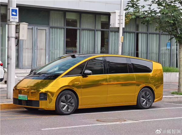 近日,一辆独特的理想MEGA车型在北京街头引起了人们的注意。这辆车以其“土豪金”的车膜成为了北京最引人注目的车辆之一。从照片中可以看出,除了大灯和外后视镜之外,该车的其他部位都被金色贴膜覆盖着,甚至包括隐藏式门把手和翼子板上的摄像头外壳等细节之处。
