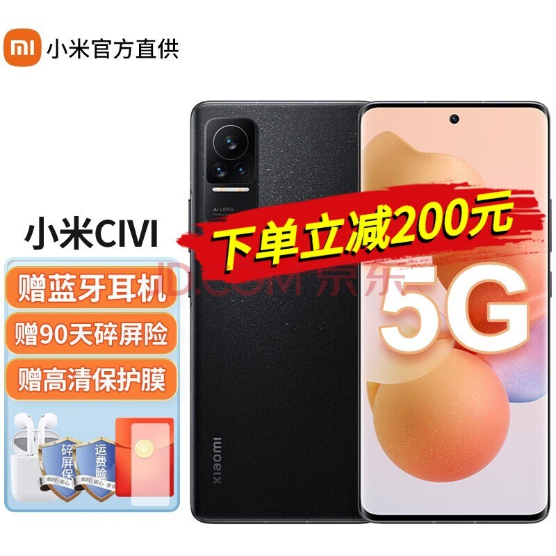 【6期免息】小米 Civi 5G手机 闪闪黑 8G+128G【90天碎屏险+晒单红包】