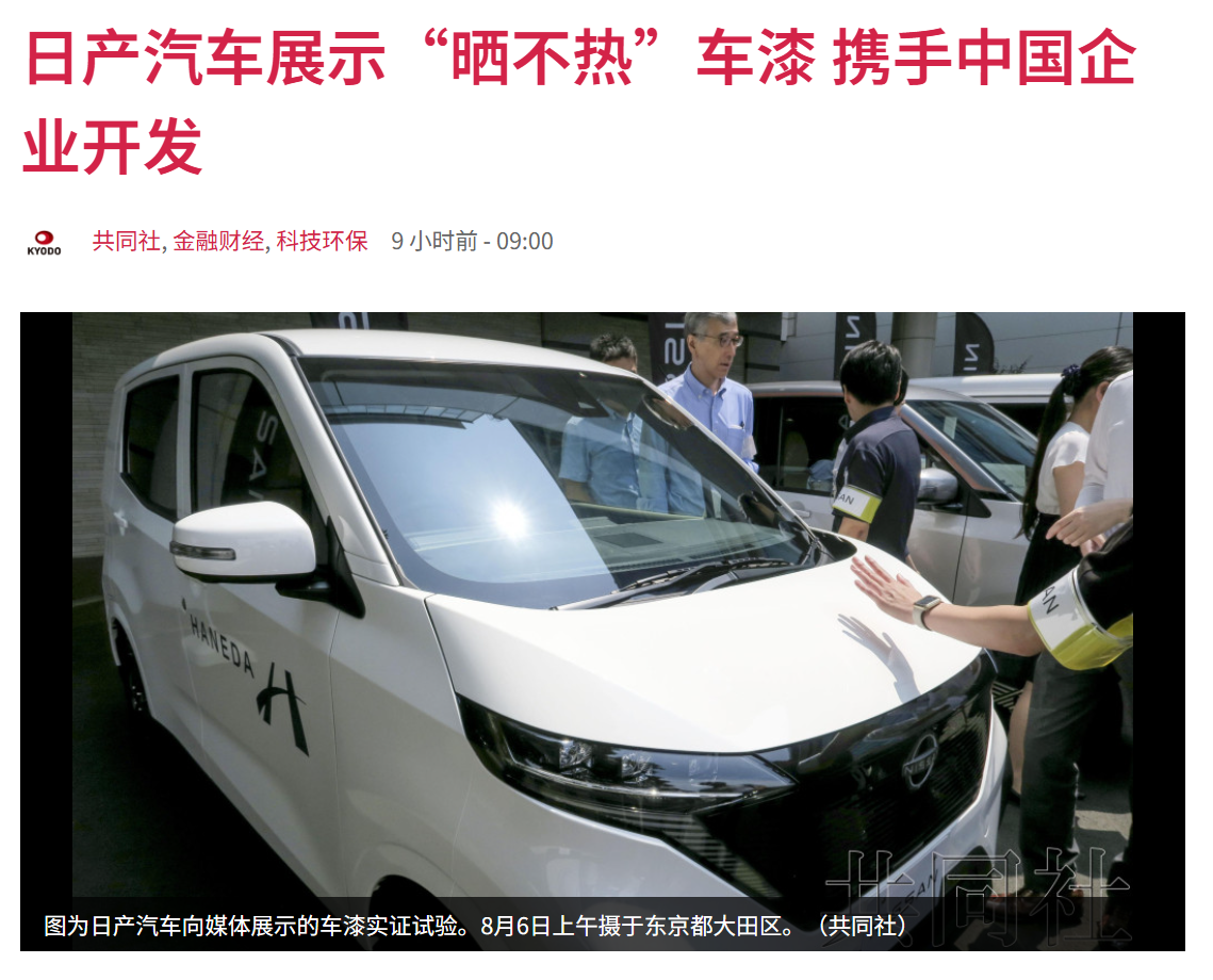 据报道,在当天公开的实证试验中,涂有特殊车漆和常规车漆的车辆均暴露在阳光下,两者表面温度相差约11度。这种特殊车漆的漆膜较厚,目前仍在开发改良阶段,并考虑应用于卡车、救护车等车辆上。