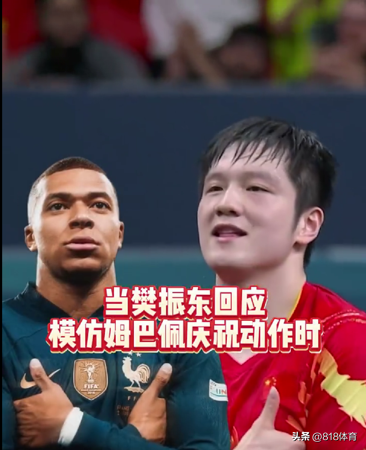 赛后采访时,有记者问到了樊振东致敬姆巴佩的庆祝动作。