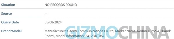 根据IMEI数据库的最新消息,Redmi Turbo 4已经进入了测试阶段。该款手机预计将于2025年4月发布,其型号为“2412DRT0AC”,最后一个字母“C”代表中国。
