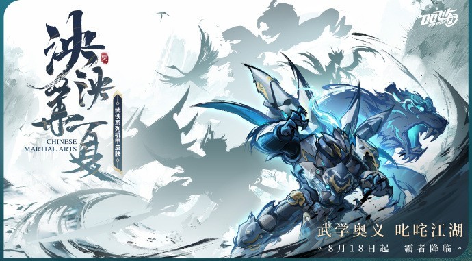 8月18日起,泱泱华夏·武侠系列机甲皮肤霸者登临,一同追寻武学的至高境界。