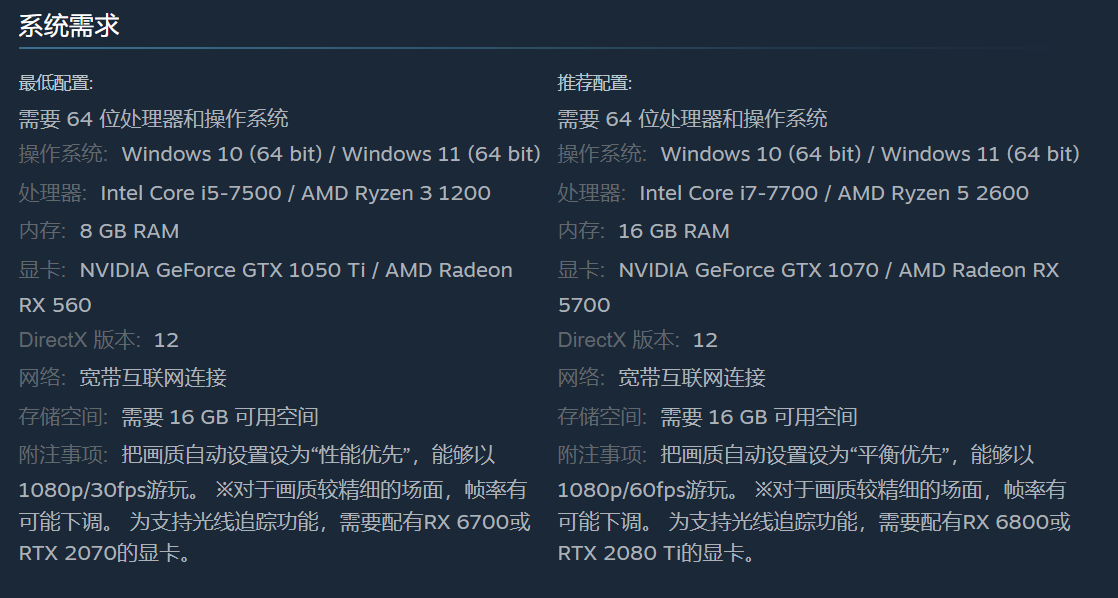 可以看到这四款显卡在2K和4K下分辨率表现各有差异。RX7800 XT领先同级别的RTX4070约17%,RX6750 GRE 10G领先对手RTX4060约8.5%。整体表现2款A卡优于N卡,4K分辨率下,中端显卡应根据实际情况适当降低画质体验游戏。
