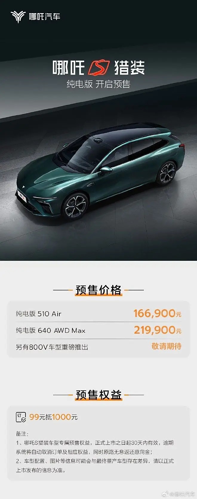 16万内 哪吒S猎装版纯电车预售价公布