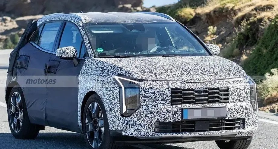 根据最新消息,2025款起亚狮铂拓界Sportage SUV在南欧进行了夏季测试。该款车型的前大灯设计全新升级,采用了垂直排列的LED光源,展现出独特的风格。