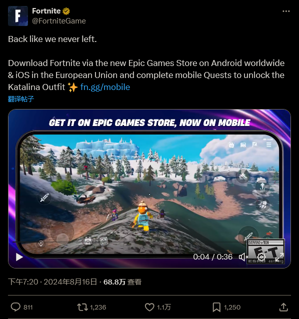 为了帮助玩家在iOS和安卓设备上安装游戏,官方发布了系列视频教程。要在iOS系统上安装游戏,玩家首先需要通过苹果对欧盟用户的区域检测,然后通过浏览器访问Epic商城官网获取移动商城应用,并从中获取游戏。