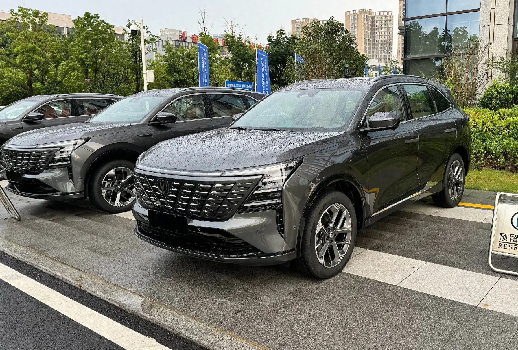 在内饰方面,新车中控台造型更加简洁,座舱风格与深蓝S7和深蓝G318相似。最引人注目的是10.25英寸液晶仪表屏、14.6英寸中控屏和12.3英寸副驾显示屏组成的三联屏设计,科技氛围丝毫不输当下的新能源汽车。此外,新车还配备了怀挡式电子换挡机构,释放出更大的储物空间。