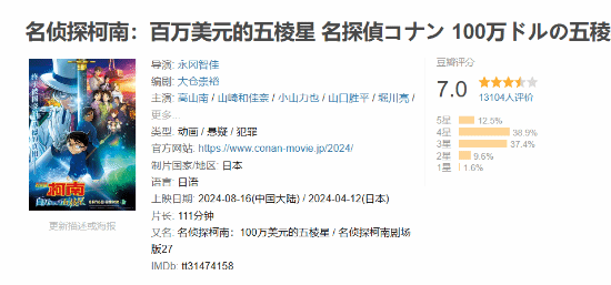 知名动画《名侦探柯南》的第27部剧场版——《名侦探柯南:百万美元的五棱星》已经正式在国内上映。这部作品吸引了众多粉丝的关注,他们纷纷在豆瓣上评价这部电影。