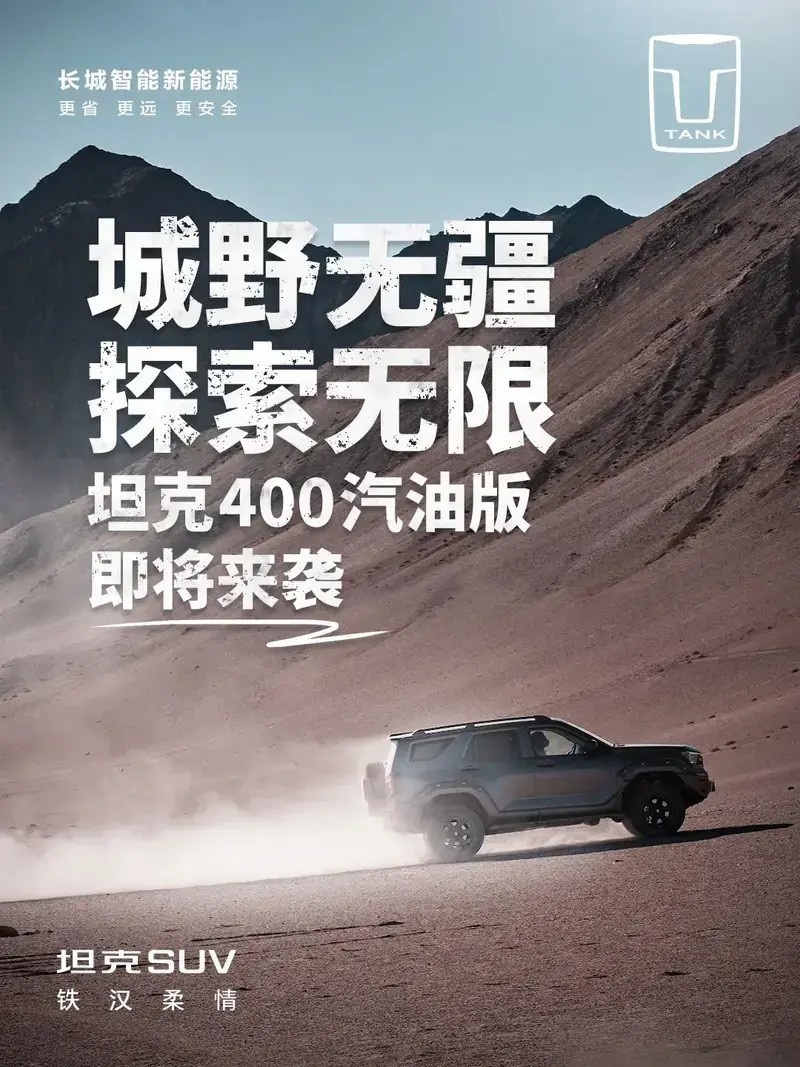 长城汽车近日正式宣布,坦克400汽油版即将加入其车型阵容。早在5月份,坦克品牌的执行副总经理谷玉坤就透露,坦克300柴油版和坦克400汽油版将有望以共创的形式推进计划。