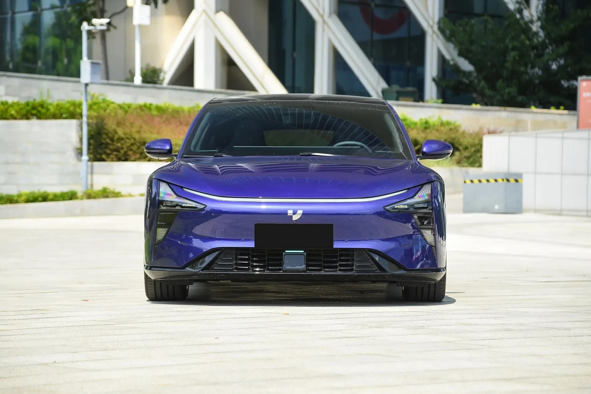外观方面,极越07采用了家族式设计风格,主要定位于年轻、前卫。车辆前脸采用内凹的设计风格,提升了车头的立体感。中网处使用了黑色蜂窝状设计,并配备分体式大灯组,LED灯带贯穿整个车头,两侧大灯远近光功能齐全。整体来看,其颜值较高。