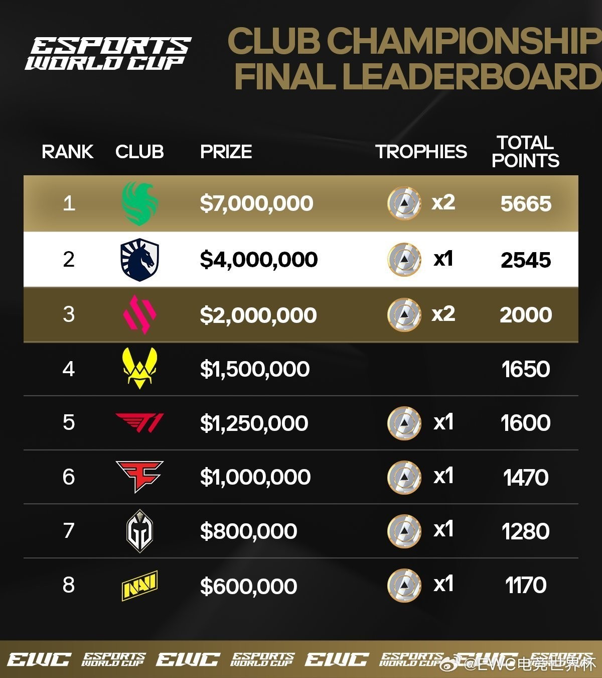 值得一提的是,Team Falcons在本次电竞世界杯上展现出强大的实力和专业素养,他们凭借稳定的发挥和卓越的技术能力赢得了广大观众和专家们的认可。他们以5665分的总得分夺得了冠军,并在多个游戏中名列前茅。