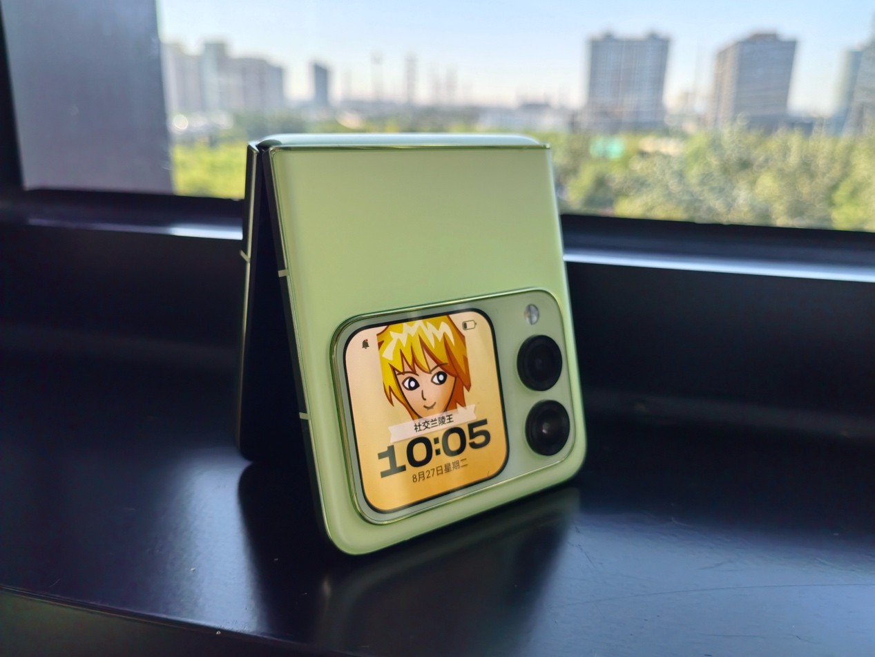 除了丰富好玩的外屏创新功能外, 华为nova Flip本身的硬件实力和体验也非常出色。比如在外观设计方面 华为nova Flip也独树一帜,充满未来感的悬浮设计,简约平衡的方形外屏,尽显先锋美学。配色上更是大胆,主打的向新绿以清新绿色为主色调,展现了一种年轻、活力的气息,更好地贴合了年轻人不羁的个性态度,让人一眼难忘。