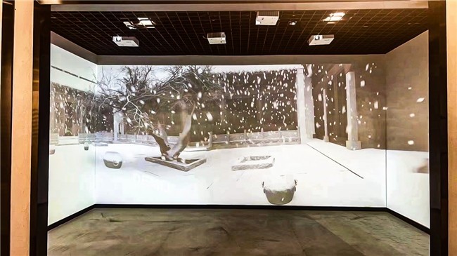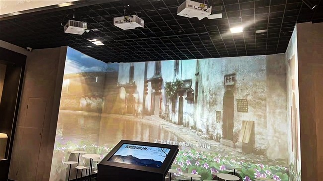 而在“宗祠相望,源远流长”的文化长廊中,数台骑士系列合力演绎折幕沉浸式剧场“岁时年景,徽州之韵”,上演了一场幽远雅致的视听盛宴。骑士系列拥有高色域投影机认证,同时内置六轴色彩校正功能,可使其色彩过渡平滑自然,在多机融合应用中编织出浑然一体、色彩斑斓的壮美画卷。置身其中,学生可以沉浸式饱览徽派建筑的建造过程,于四季更迭中体验徽派建筑的不同风貌,感悟古人的精巧构思和匠心工艺。