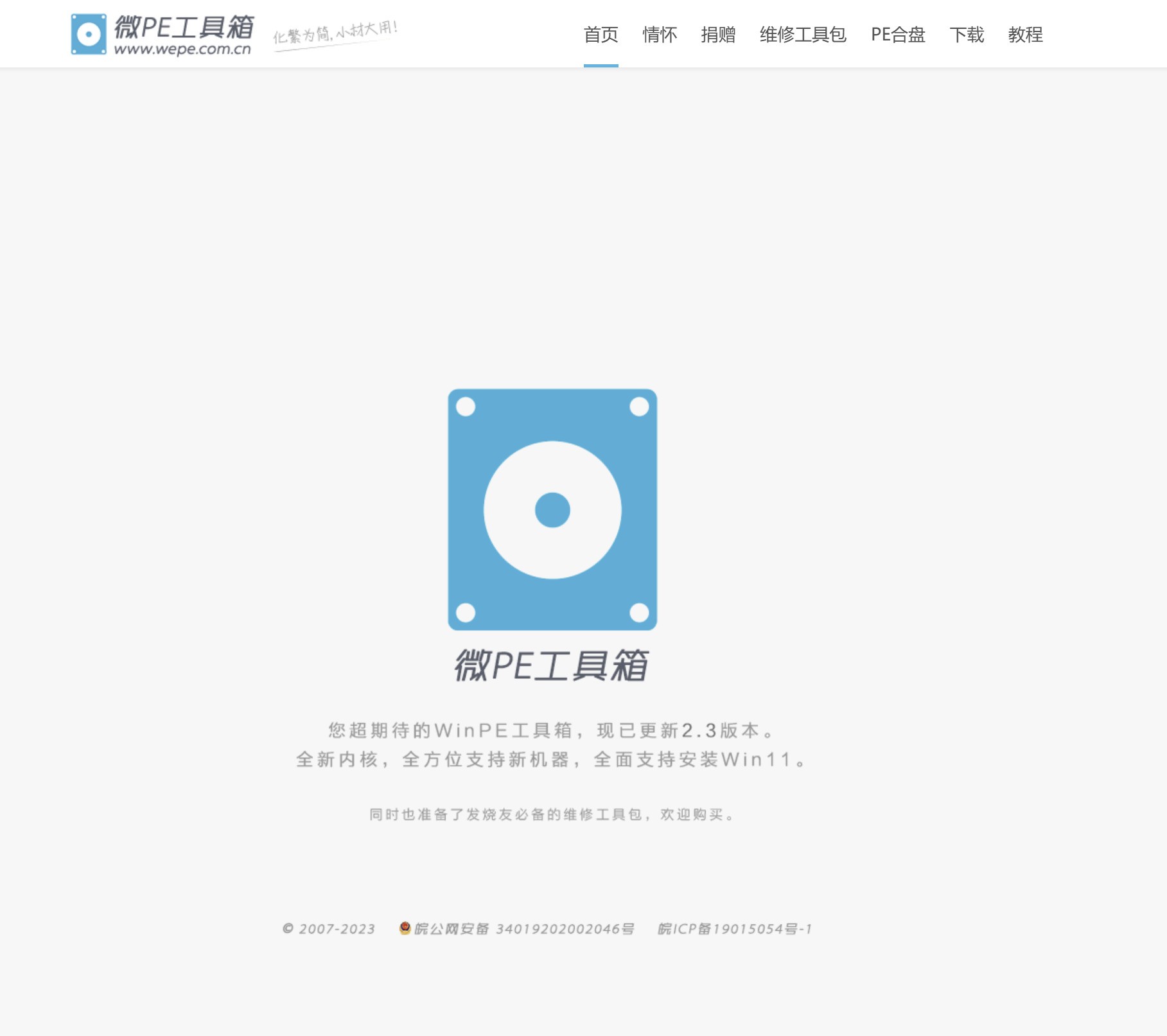 目前有很多免费的PE可选,这里比较推荐微PE工具箱,点此跳转。PE也是流氓软件、广告的重灾区,最好不要轻易倡议搜索引擎中比较靠前的搜索结果。