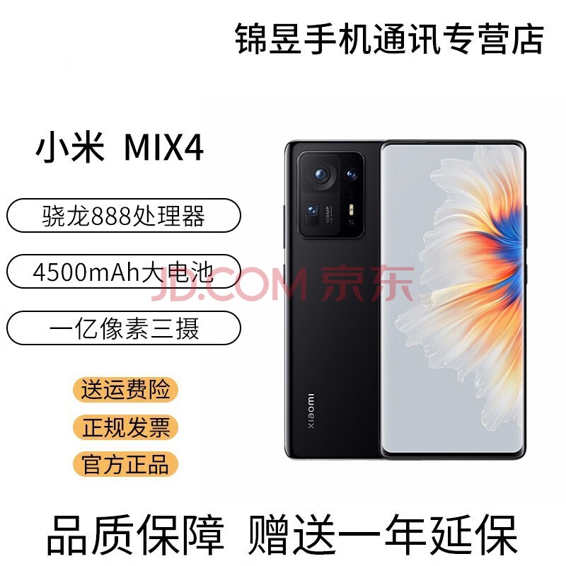 小米(MI) MIX4 骁龙888+ 一体化陶瓷机身 全面屏 一亿像素三摄双扬声器 陶瓷黑 12GB+256GB