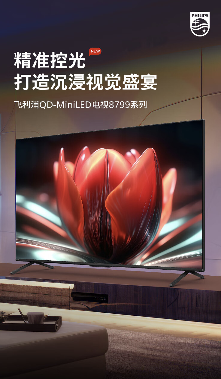 飞利浦T3系列Mini LED电视近日在京东上市,提供65英寸和75英寸两种尺寸可选。这款新品主打4K 120Hz画质技术,并且配备了QD-Mini LED面板,分辨率达到了3840x2160,亮度可达610尼特,支持10-Bit色彩和113%(65英寸款)/103%(75英寸款)的DCI-P3色域覆盖。同时,它还采用了3840Hz高频调光技术以及“50-100”级分区。