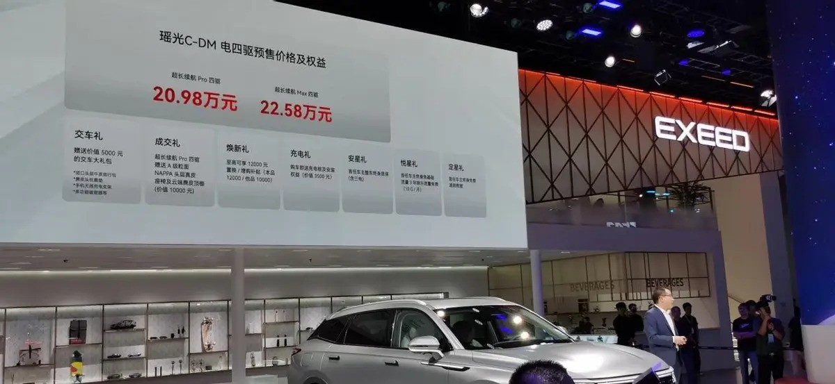 星途瑶光C-DM电四驱车型正式开启预售,售价分别为20.98万元和22.58万元。该车采用封闭式格栅设计,符合其新能源车型的定位,并展现出更具科技感的整体外观。