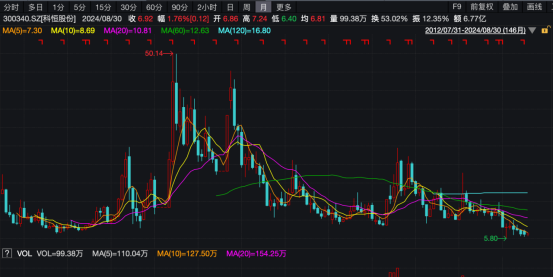 根据协议,公司与格力金投签订增发协议的股价是9.27元/股,当月科恒股份的均价为11.71元/股。2年后,定向增发完成,但截至2024年8月30日收盘,科恒股份已下跌至6.92元/股,下跌幅度为25%。