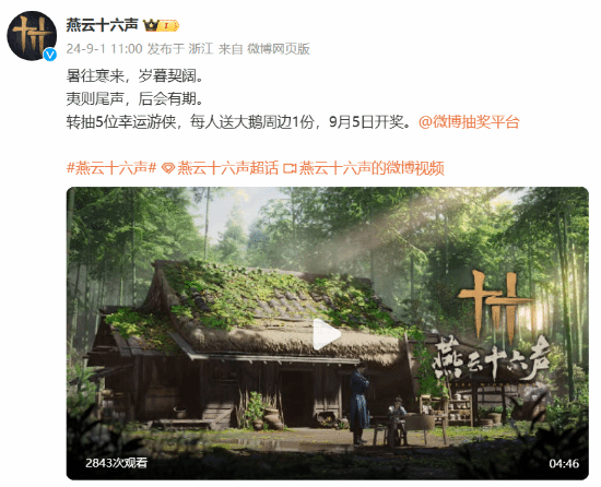 近日,《燕云十六声》发布了一段游戏环境音视频,展示了游戏中林间清幽的氛围。这段视频的文字背景是“暑往寒来,岁暮契阔。夷则尾声,后会有期”。