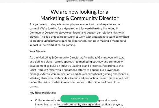 今年5月,《地狱潜兵2》经历了一波热度和大批判,社区经理也因此被开发商Arrowhead工作室辞退。近日,Arrowhead工作室发布最新公告,宣布招募新的社区经理。然而,许多玩家对此持怀疑态度,他们认为此举已经为时已晚。