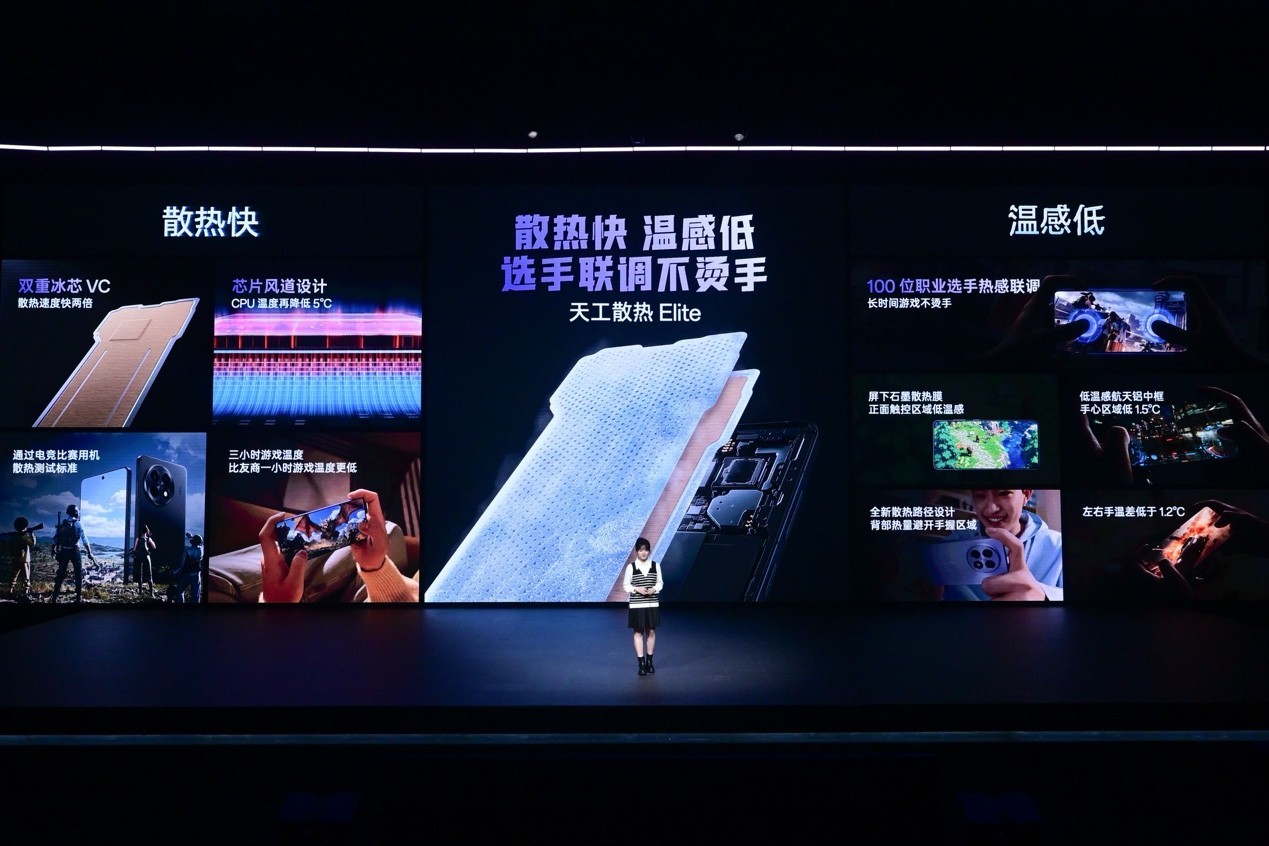 一加Ace5 Pro 首发搭载专为超高性能芯片打造的全新散热系统「天工散热Elite」,带来散热快、温感低的优秀散热表现,为长时间重载游戏保驾护航。在散热最重要的VC结构上,一加Ace5 Pro 首发「双重冰芯VC」,带来3D立体的双层超薄毛细结构,散热速度较上一代提升两倍。同时,一加Ace5 Pro 还采用行业首个芯片风道结构设计,在芯片底部定制了超过100条金属散热风道,大幅降低CPU核心温度,长时间玩游戏不卡顿不发烫。此外,一加还与PEL职业选手展开进行热感联调,真正做到散热速度快,握持不烫手,让普通用户也能拥有极致的电竞级游戏体验。
