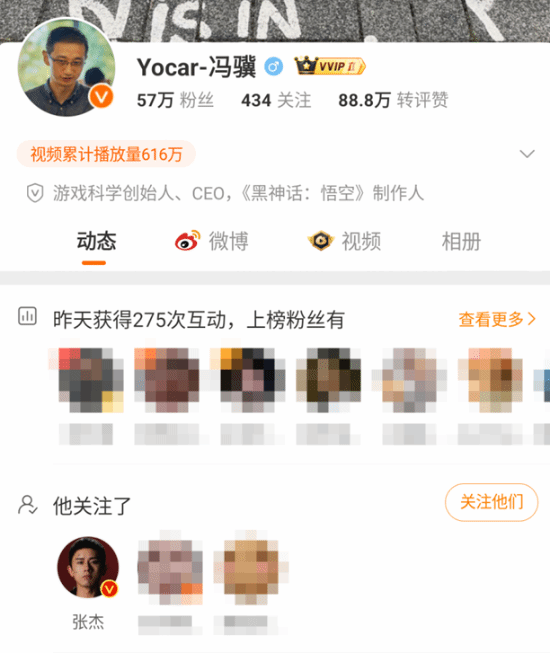 《黑神话:悟空》冯骥微博关注张杰 玩家纷纷猜测其关系