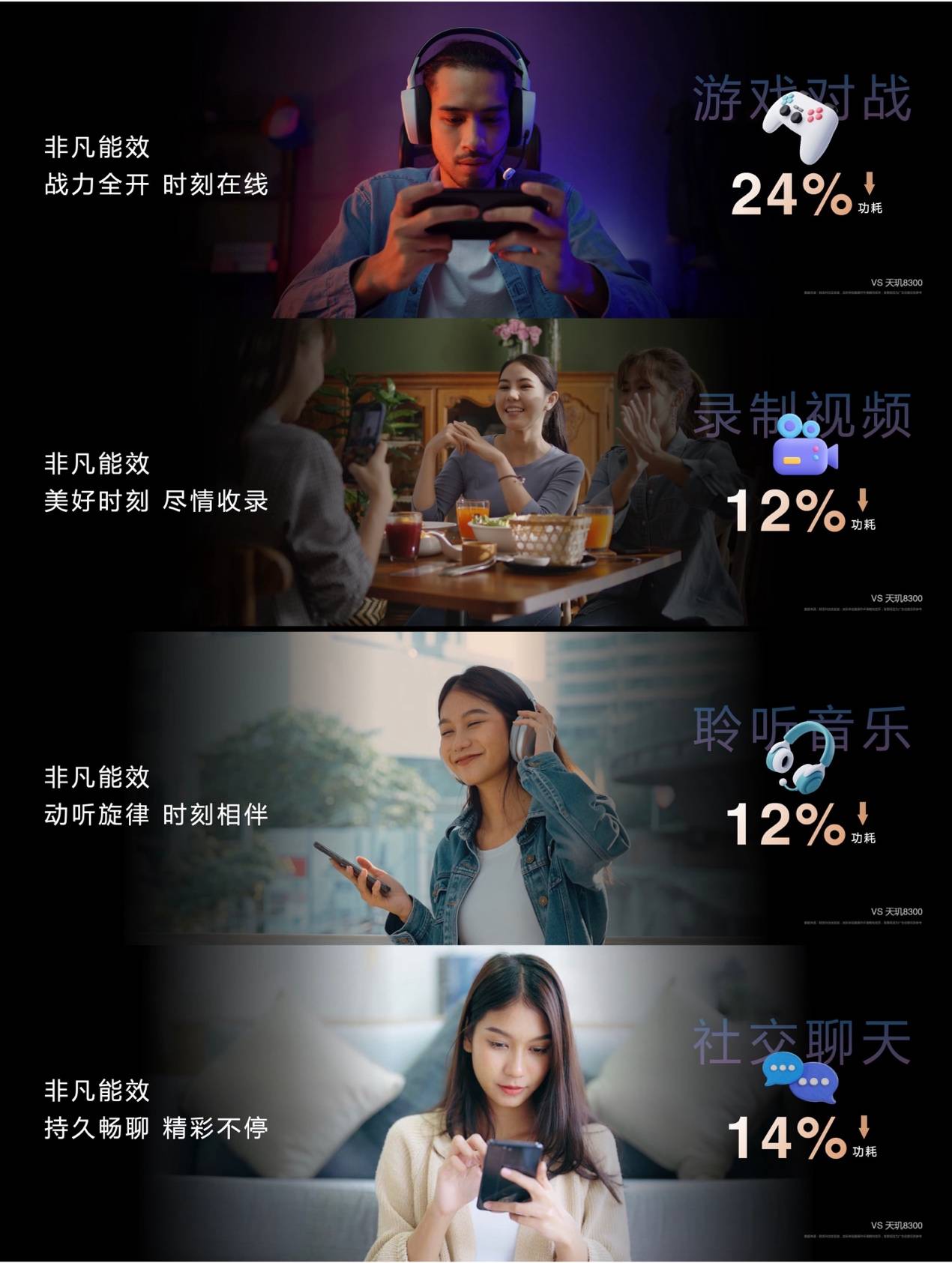 创新的全大核设计加上倍增的缓存,为天玑 8400 带来了传奇的能效表现。在日常使用中,它实现了多场景功耗的大幅降低,极大延长了手机的使用时间。例如,在游戏开黑时,功耗降低达 24%;听音乐、录制视频降低 12%;社交聊天这种高频场景也能降低 14%。天玑 8400 带来的不仅是玩的更爽,更用低功耗带来全天候的极致体验!