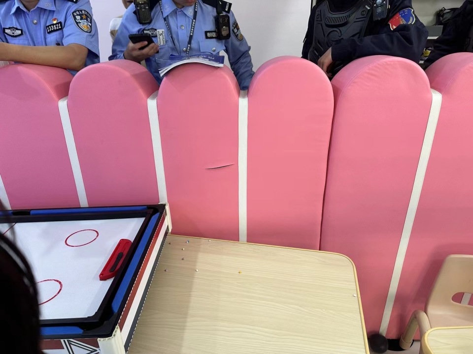 警察问我女儿,她指着一个小男孩说他拿海洋球砸其他小朋友。打人的小男孩只有五岁。警察问他时,他承认自己打了人。小男孩的奶奶也在一旁。