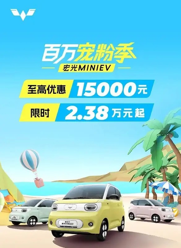 7月7日,五菱汽车官方发布了一项限时购车优惠活动。本次活动于7月7日开始,并将持续至7月31日。在此期间,消费者购买五菱宏光MINIEV微型电动车可享受最高达1.5万元的优惠。原车入门价格为2.38万元,经优惠后变得更加亲民。