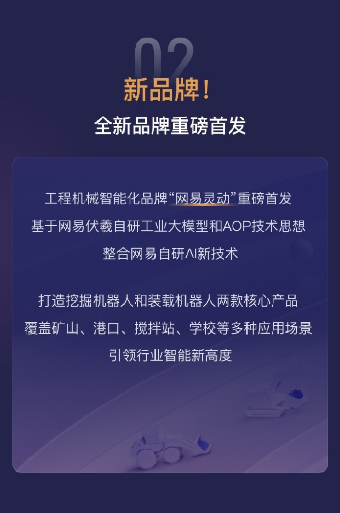 7月4日,2024世界人工智能大会期间,网易伏羲发布了其首个机器人品牌“灵动”。这一品牌是基于网易伏羲自研的工业大模型和AOP技术思想打造而成。旗下两款核心产品——挖掘机器人和装载机器人已参与了50个重点建设项目,覆盖矿山、港口、搅拌站、学校等多种应用场景。值得一提的是,此前专注于游戏与泛娱乐AI研究和应用的网易伏羲如今转型为专业从事智能科技产品研发的企业。